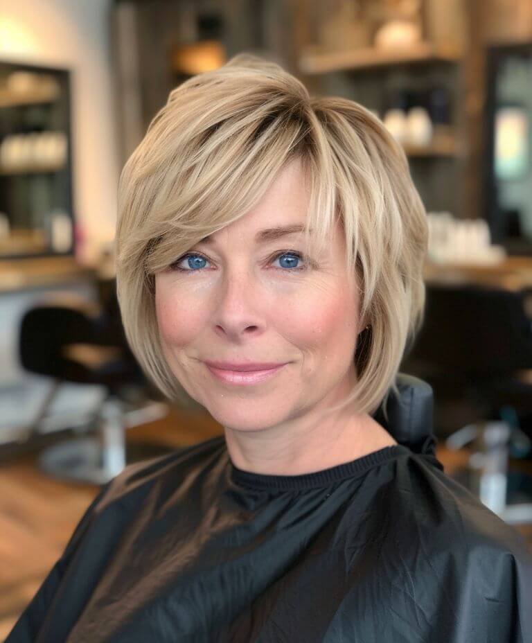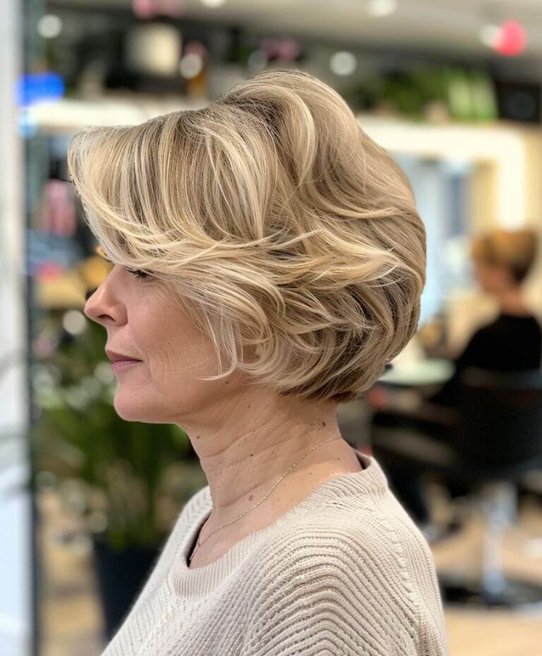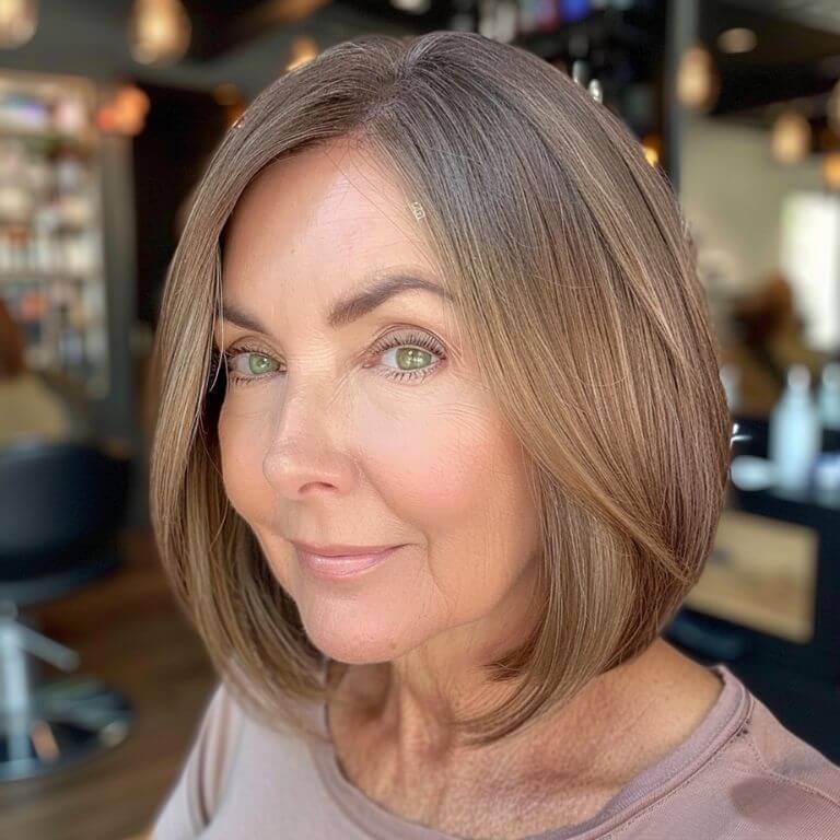A graduated bob offers natural lift and easy styling. Perfect for older women looking to rejuvenate their look with simple elegance.