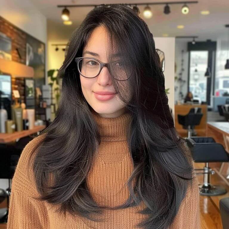 Transform your long tresses with feathery layers that bring movement and life to your look. Add a curtain bang to frame your face and highlight your features with this dynamic and voluminous style.