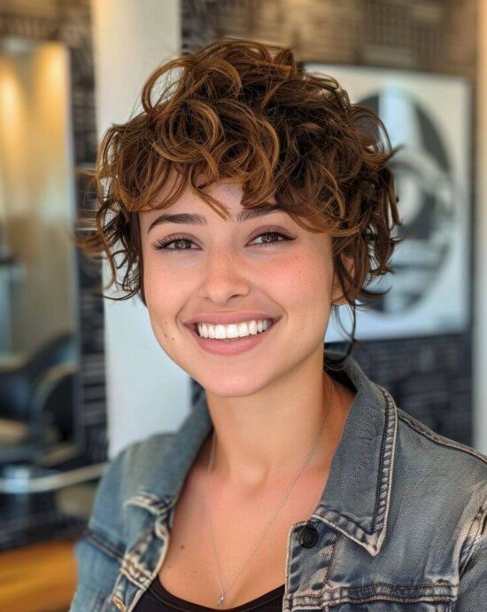 The curly shag is making a comeback, giving a nod to retro vibes with a modern twist. This cut is all about creating texture and volume, particularly around the crown and through the bangs. Maintain the shag’s rebellious spirit with minimal styling products to keep the curls soft and voluminous.