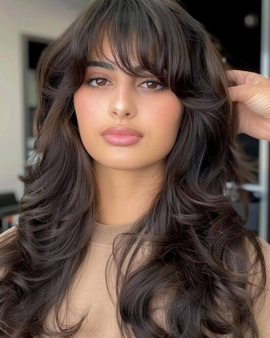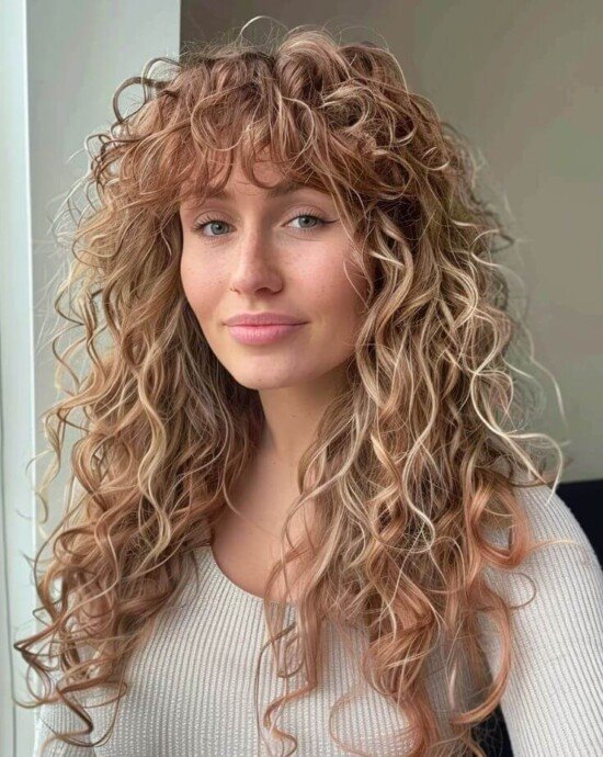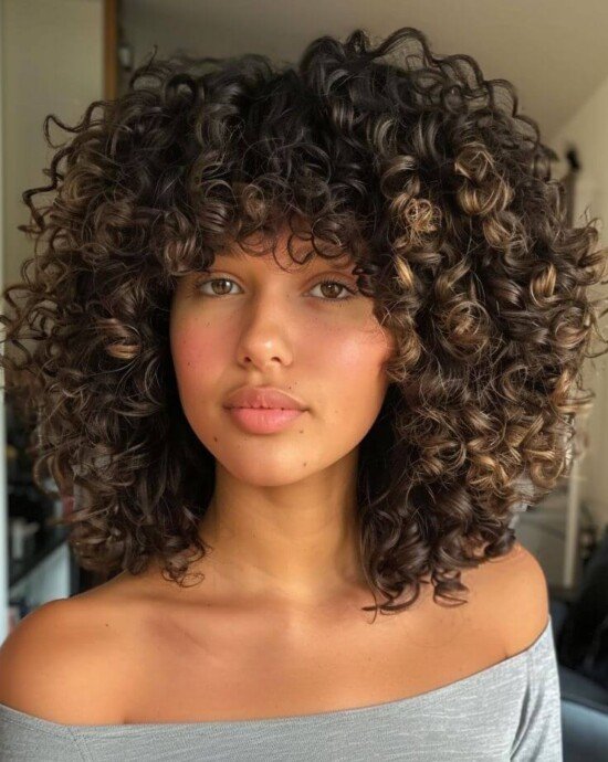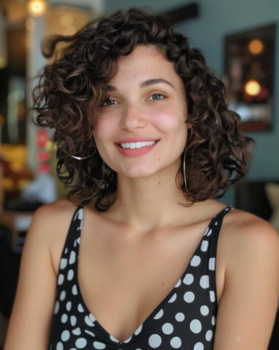 Incorporating bangs into your curly hairstyle adds a playful, youthful touch. Curly bangs work well with layered cuts to balance the look. To style, let your bangs air dry or use a diffuser, then apply a lightweight serum to define the curls and minimize frizz.