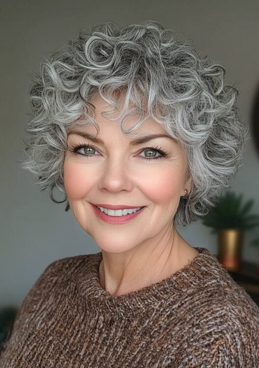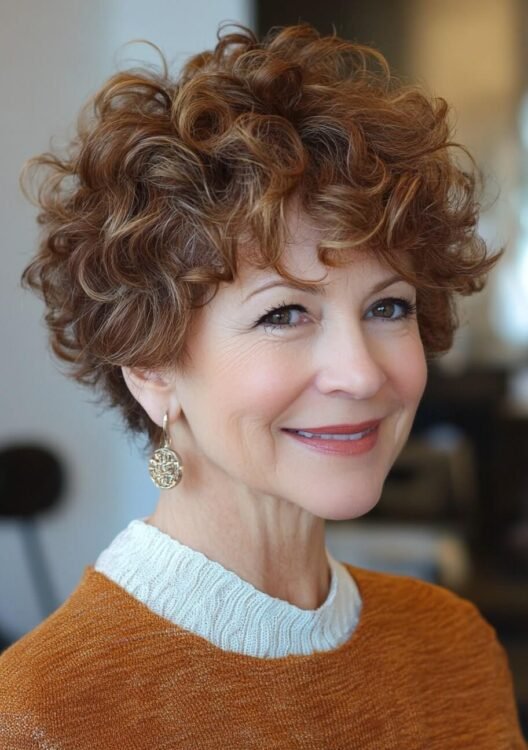 The curly crop is a playful, youthful style that embraces natural texture. The shorter length enhances curl definition, while layers add movement and dimension. This cut works well for older women seeking easy styling. Use a curl cream for hydration and definition and schedule regular trims to keep it fresh.