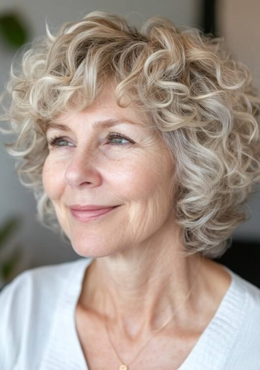 The curly bob is a timeless option for older women, showcasing natural curls while adding shape and volume. This manageable length frames the face, offering a youthful, vibrant appearance. To keep the curls bouncy, use a hydrating curl cream and schedule regular trims to prevent the ends from becoming frizzy.
